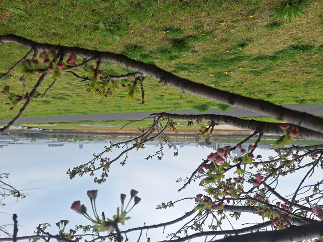 江北橋緑地の松月や鬱金など五色桜の八重は、これからが本番です。