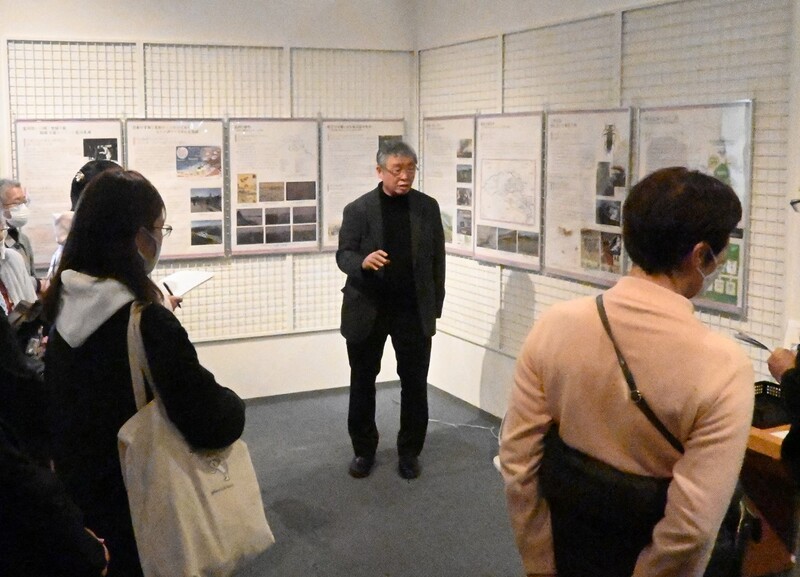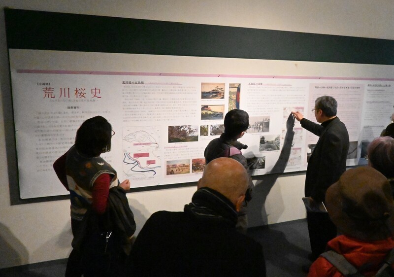 NPO法人五色桜の会理事長 井口氏による「荒川桜史」の展示解説
