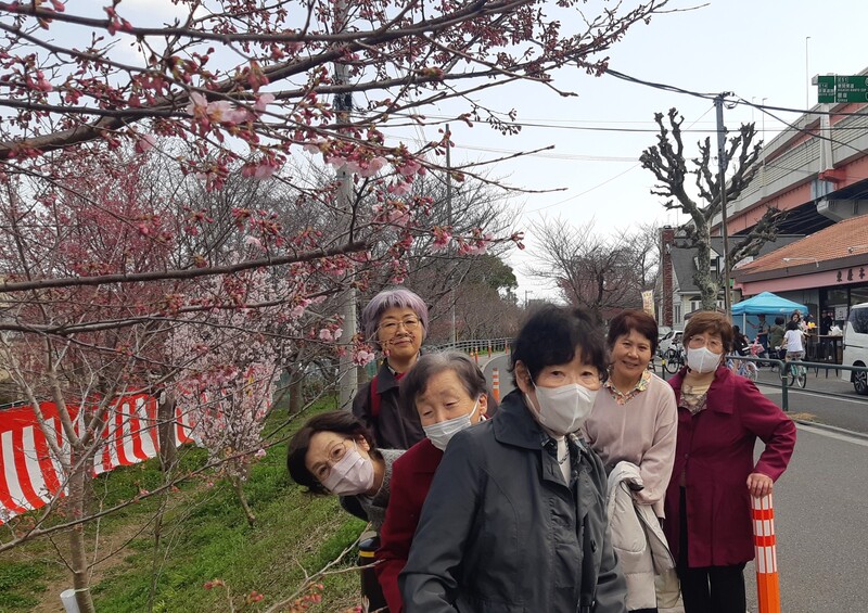 2024年3月17日「江北さくらマルシェ」に出店、 神領堀熊ノ木広場では大島桜も開花。