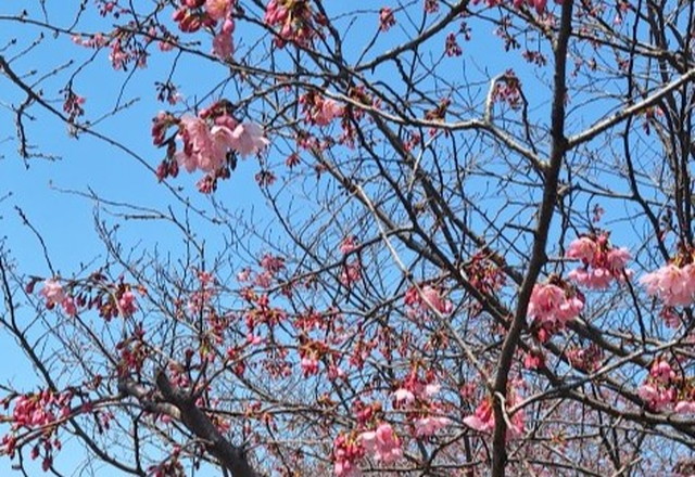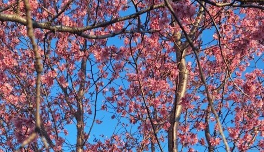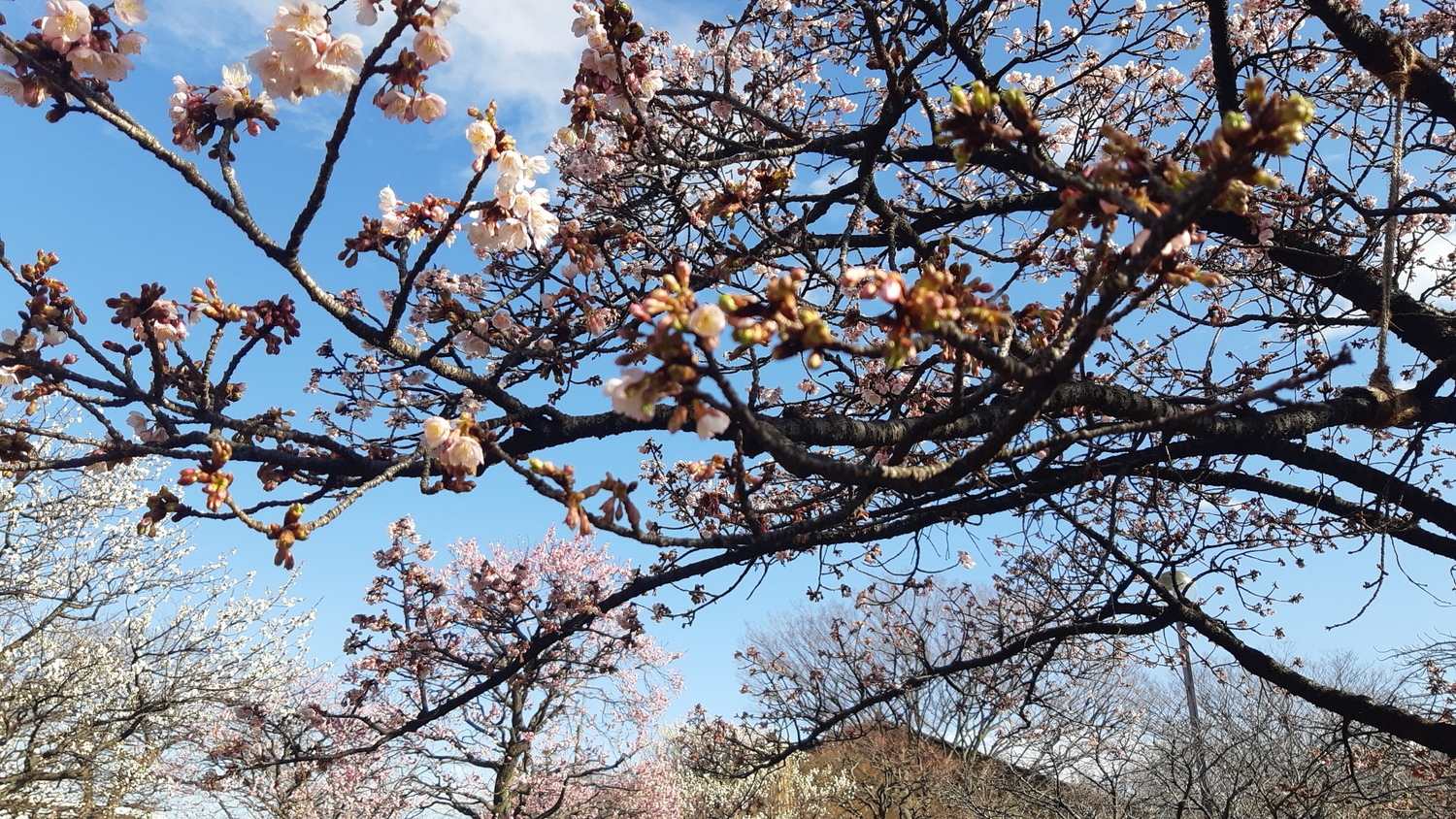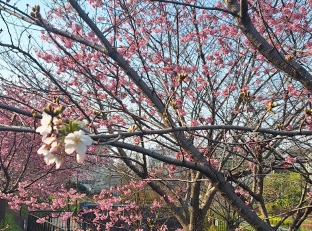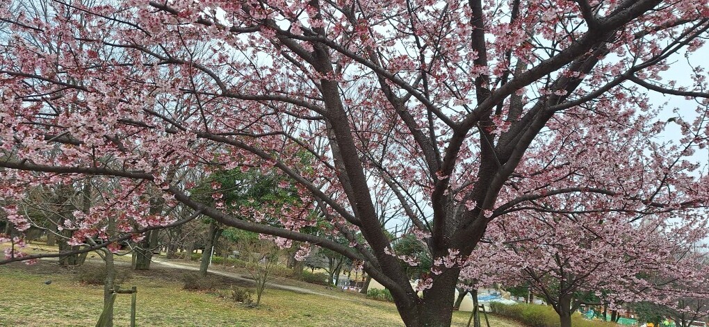 3月4日の舎人公園では、冬越しの木々のなか、ピンク色したカンザクラの並木がひと際目立ちました。