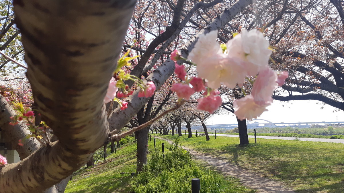 2023年4月3日 旧荒川堤、ソメイヨシノから関山に様変わり