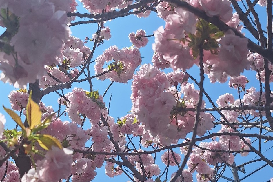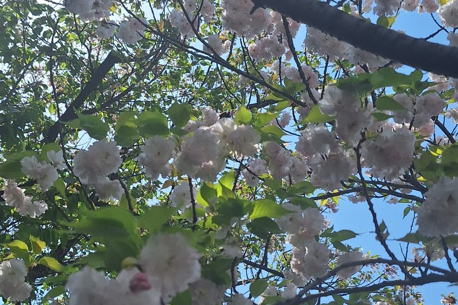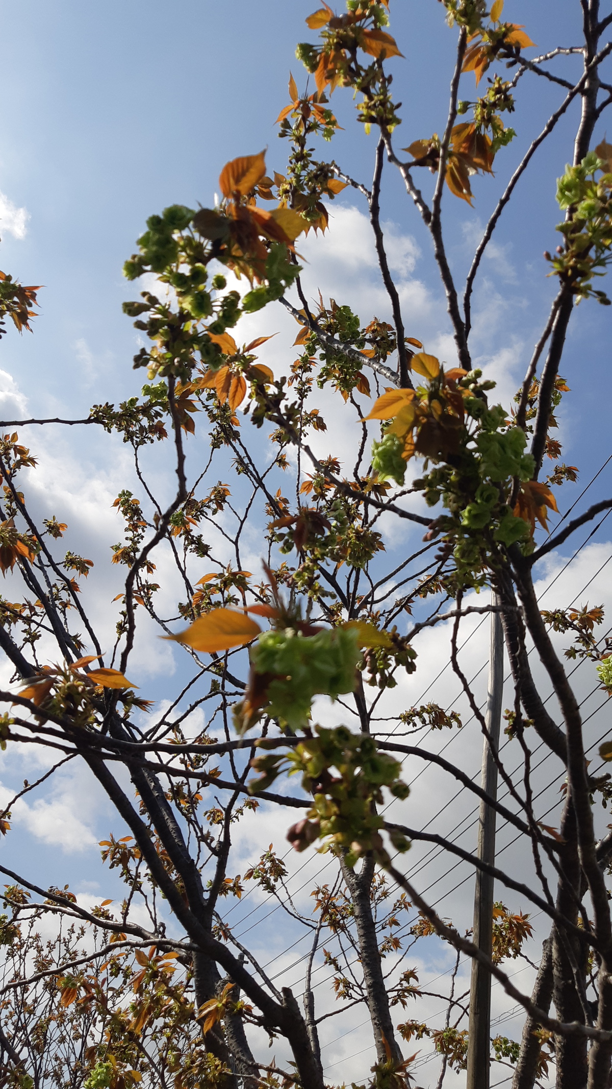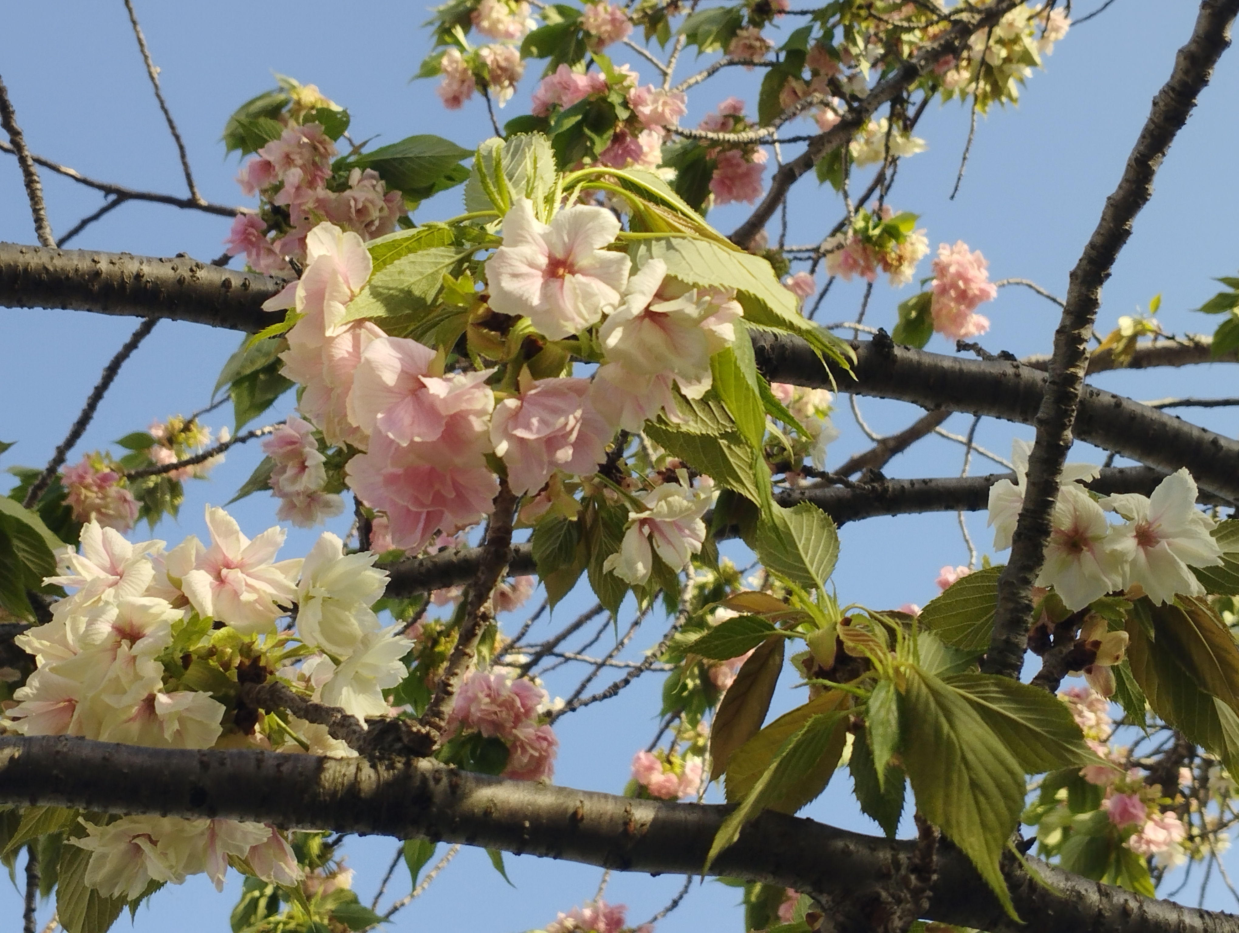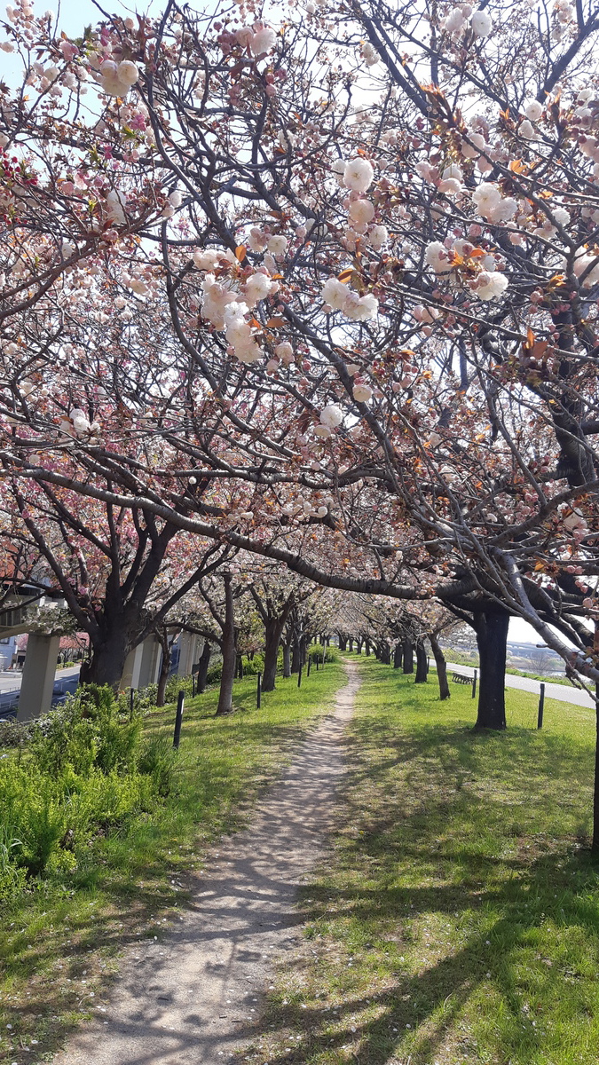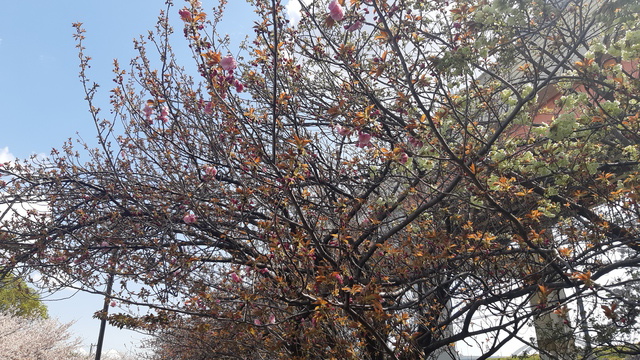 4月17日、気温23度の神領堀緑道の五色桜