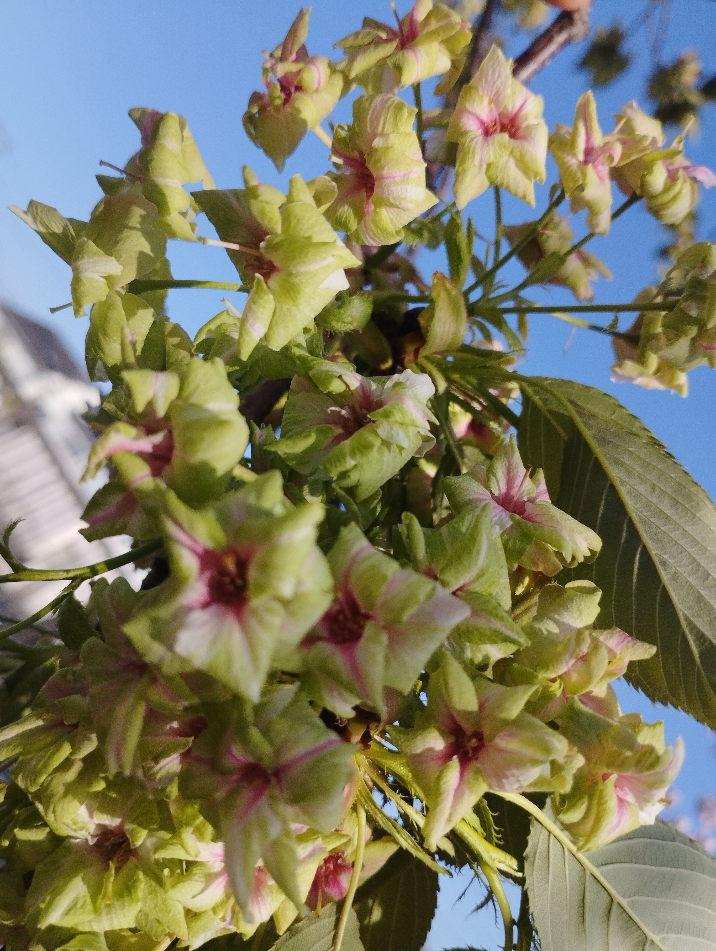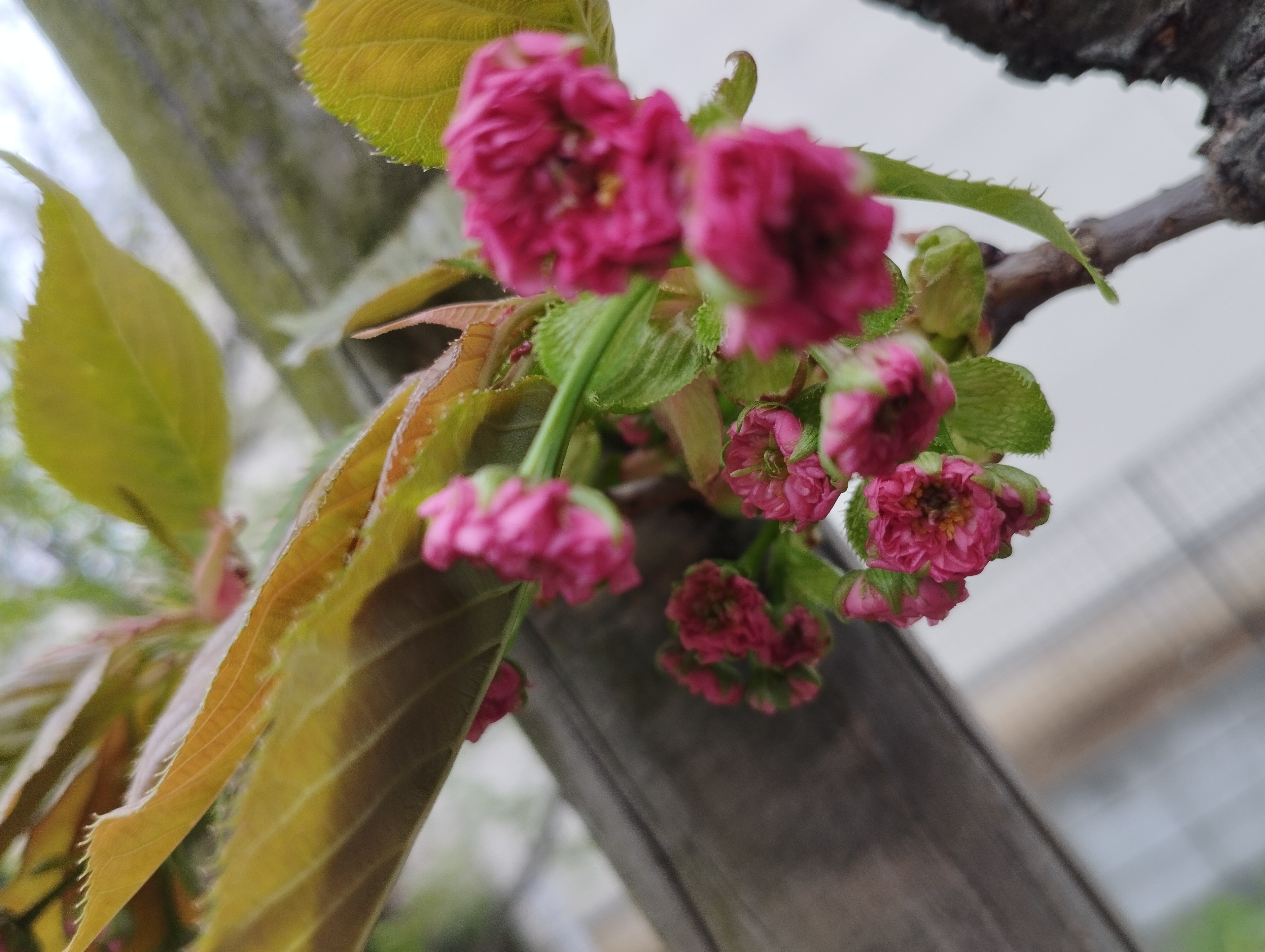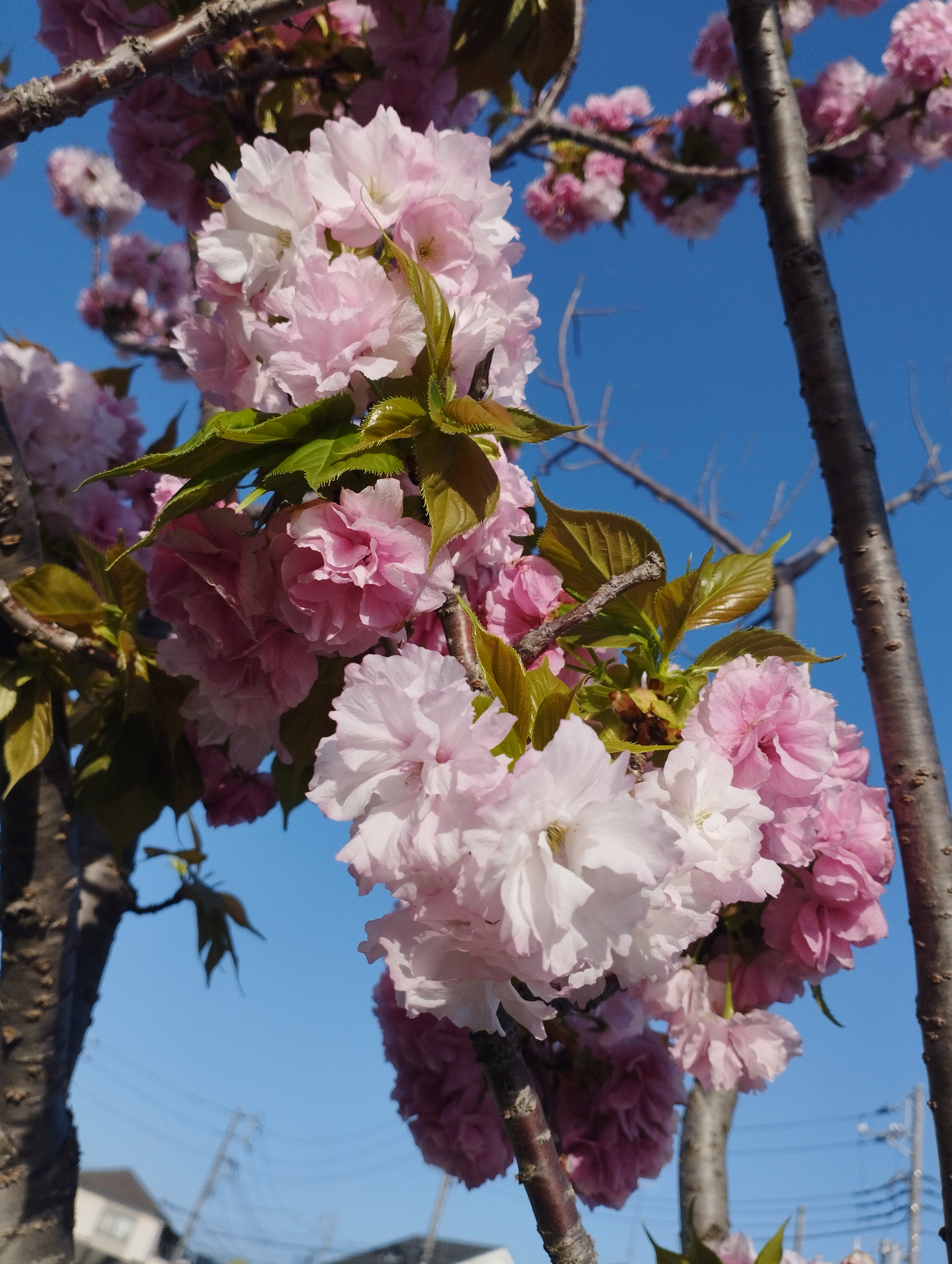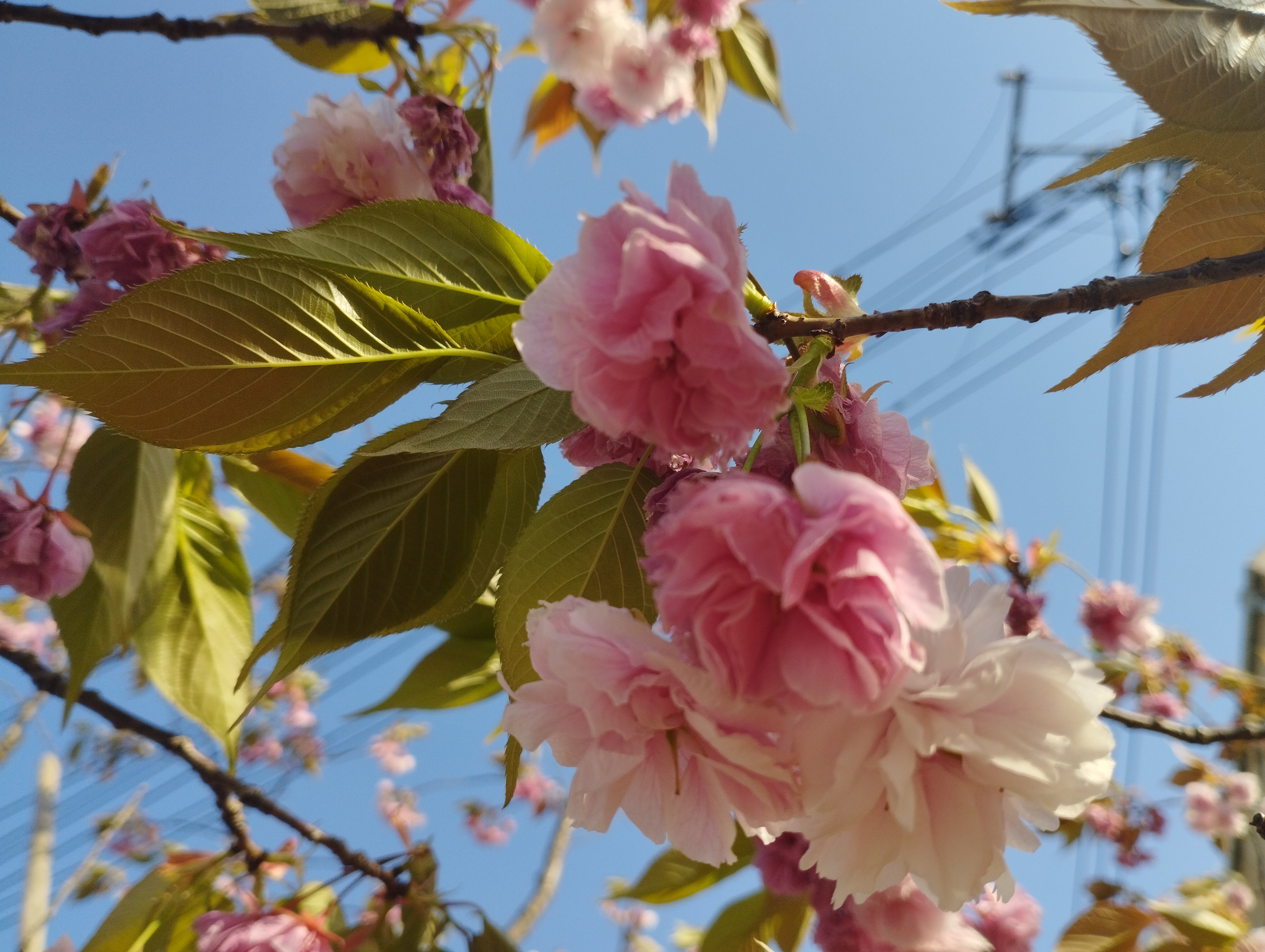 4月17日、気温23度の神領堀緑道の五色桜