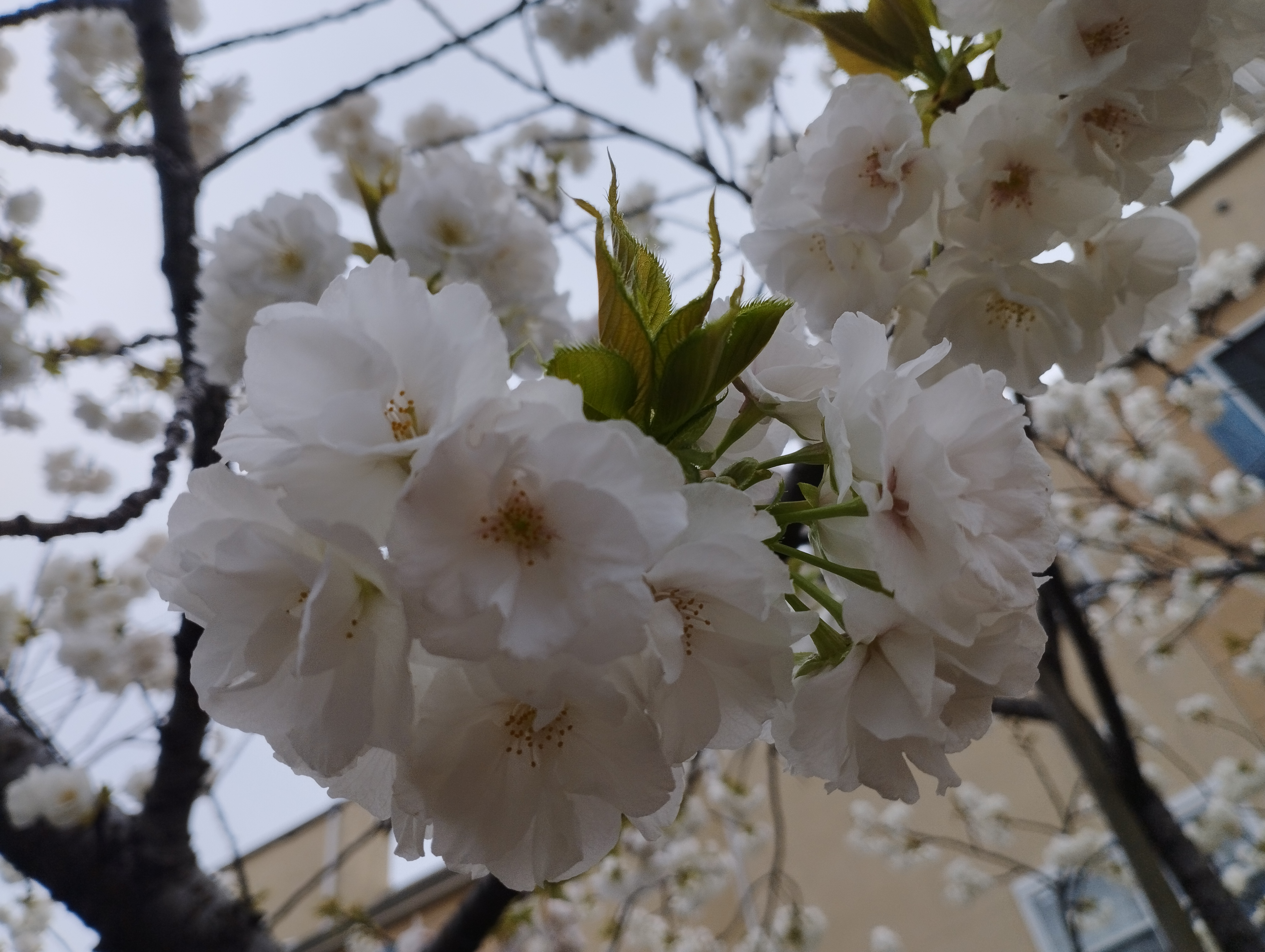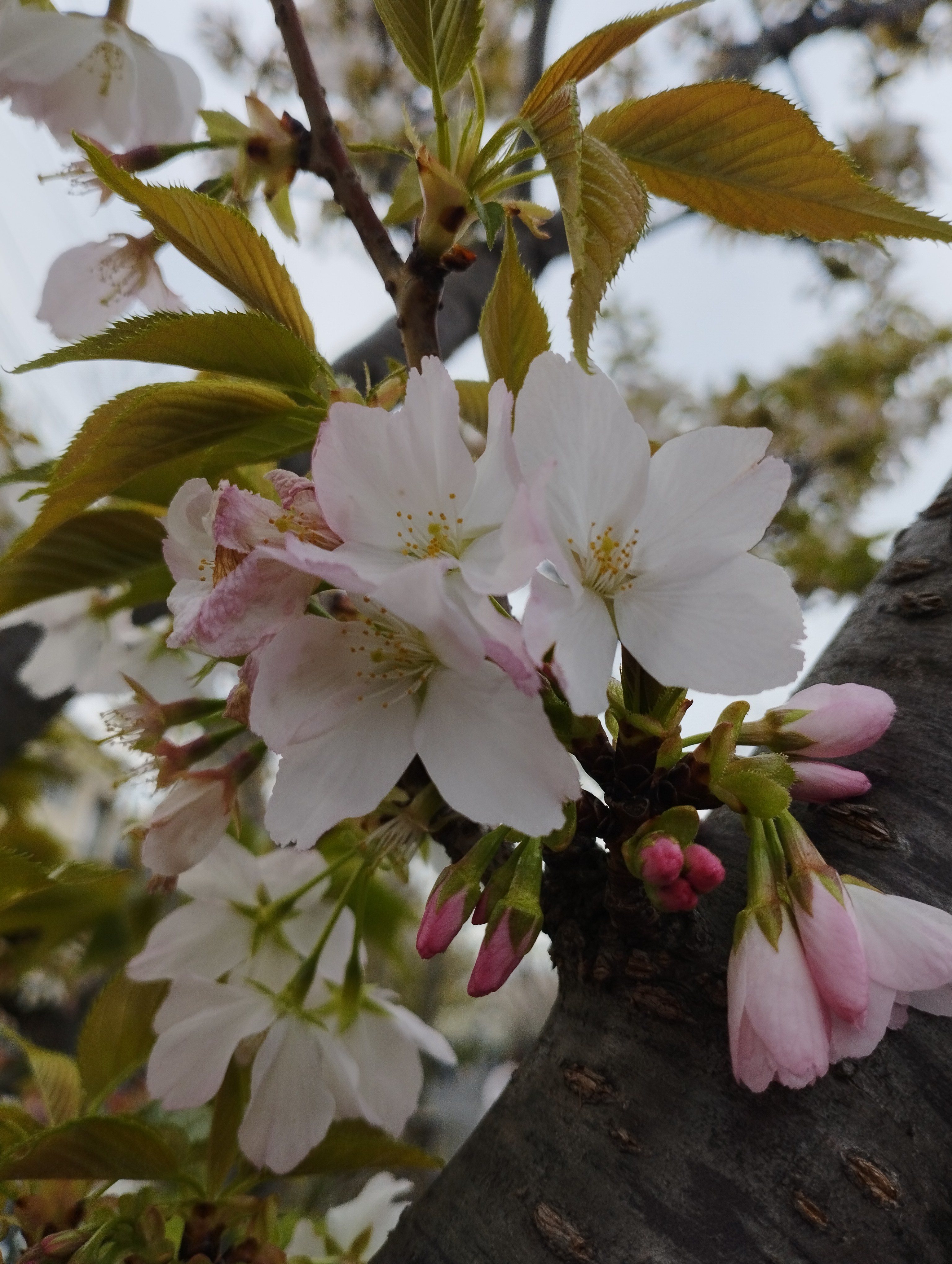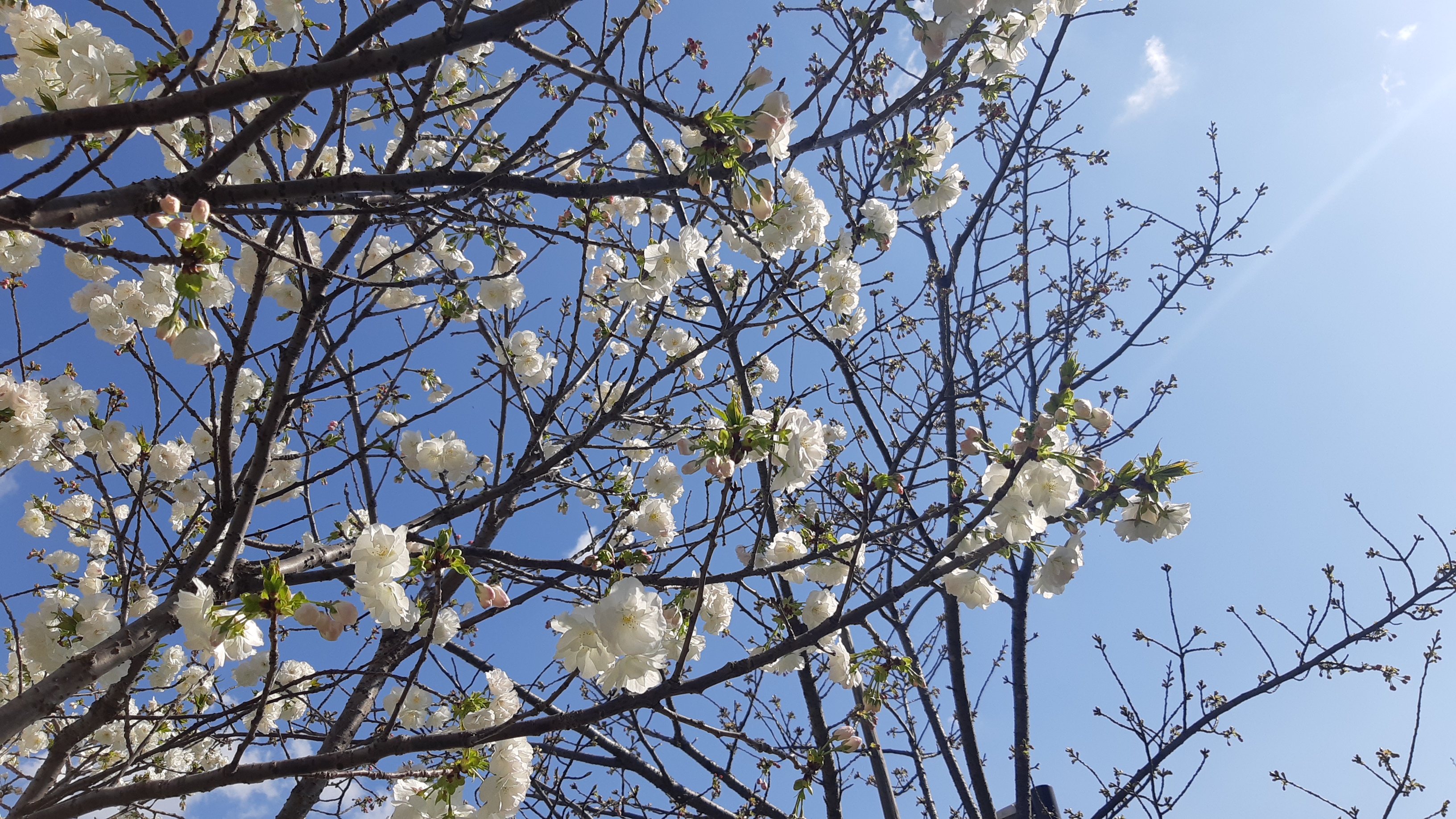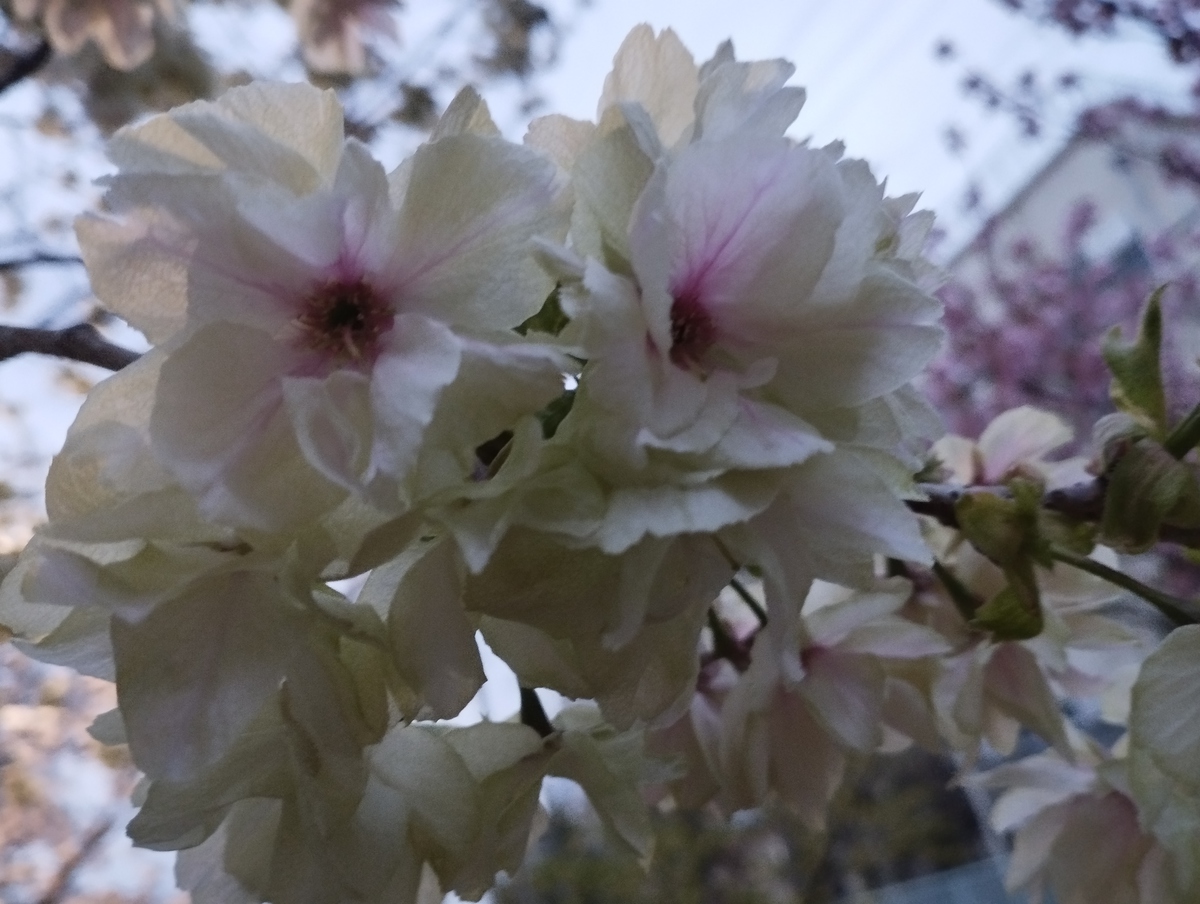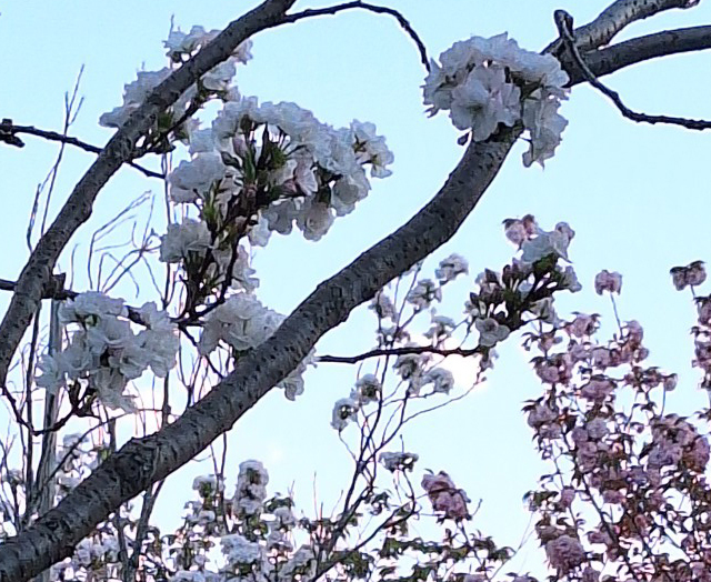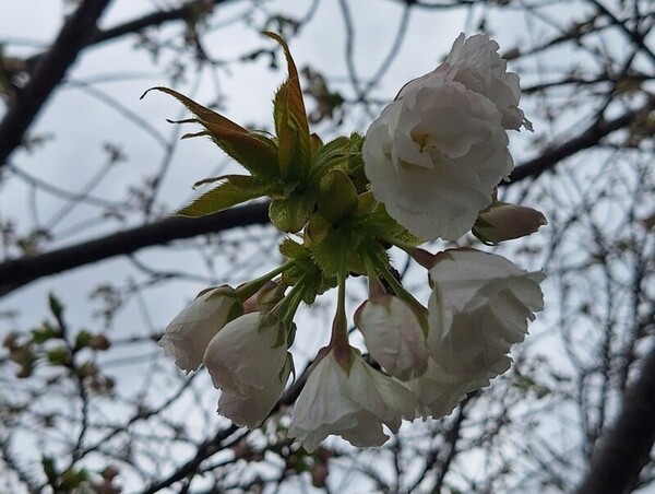 4月2日(水)、雨続きの東京ながら、足立の神領堀緑道の五色桜の蕾が少しづつほころび始め、白妙も咲き始めました。