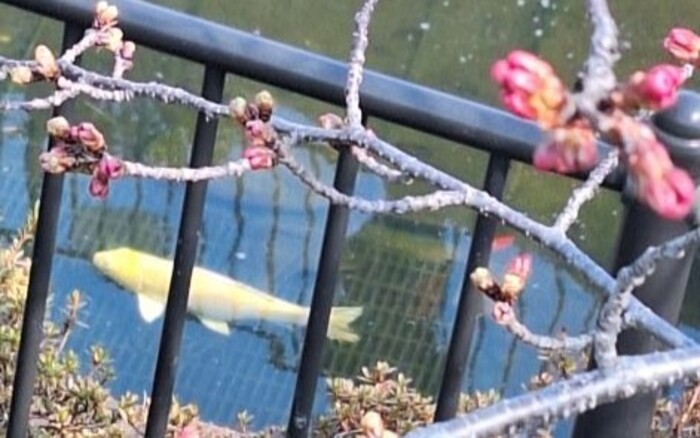 熊の木広場の雅桜と池の鯉。